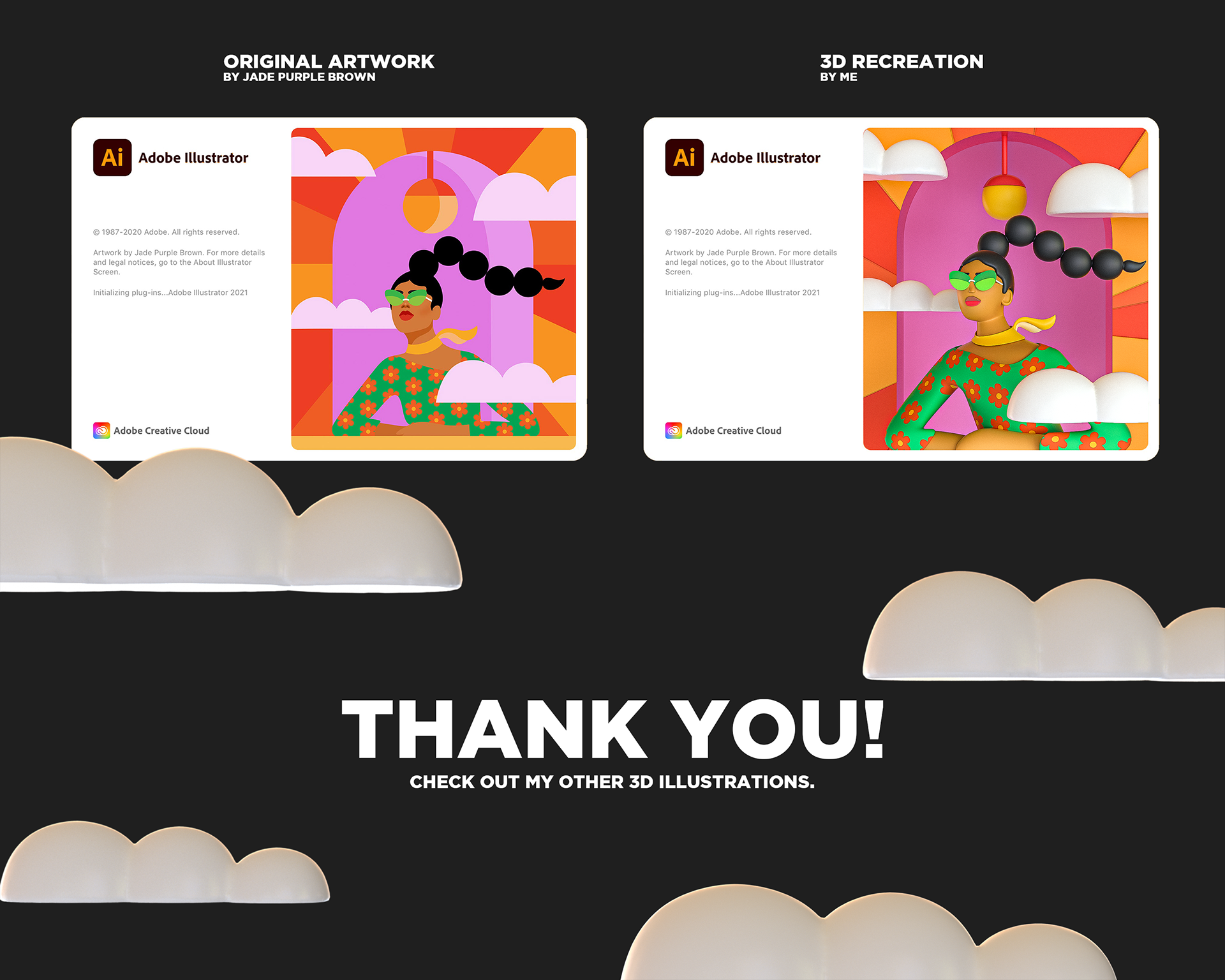 Adobe Illustrator 2021 Splash Screen. The original illustration is done by Jade Purple Brown. I tried to do the 3D recreation.